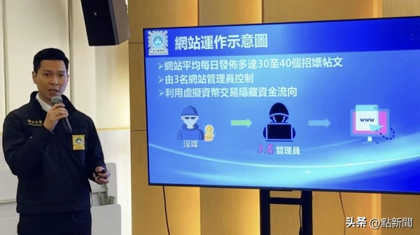 粤港澳三地警方昨日(13日)展开代号「断鸢」的执法行动,捣破一个跨境操纵卖淫的犯罪集团,合共拘捕18人包括3名负责招揽卖淫女子及嫖客的香港居民,另外截获58名卖淫女子及44名嫖客。调查发现,该犯罪集团开设一个色情网站,供卖淫女子每次以300元人民币刊登广告「搵客」,该网页由今年1月起营运,至今已刊登逾2500则卖淫广告,即平均每日发布多达30至40则,合共涉及非法收益约75万元人民币(约82万港币)。
