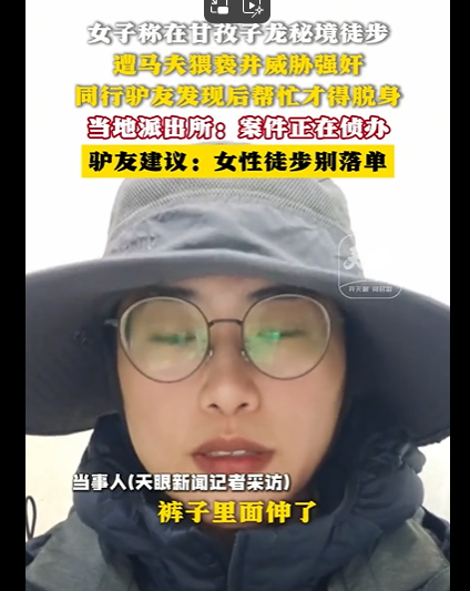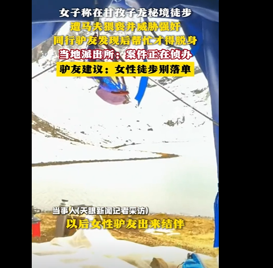 这种冷酷的态度让她感到更加绝望。就在这时,幸好遇到了一名独自徒步的男性游客。当刘某华看到他后,似乎意识到自己行为不妥,才停止了对女博主的骚扰,牵着马慢慢离开,还威胁她不许把事情泄露出去。