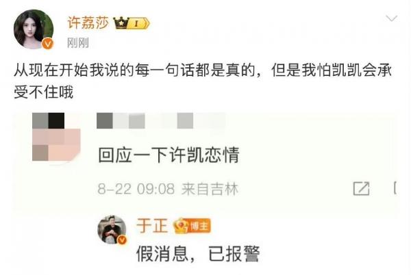 许凯最近很火,电视剧《子夜归》天天有人讨论。这时候,有人发了许凯和许荔莎的恋爱消息,网上议论起来。