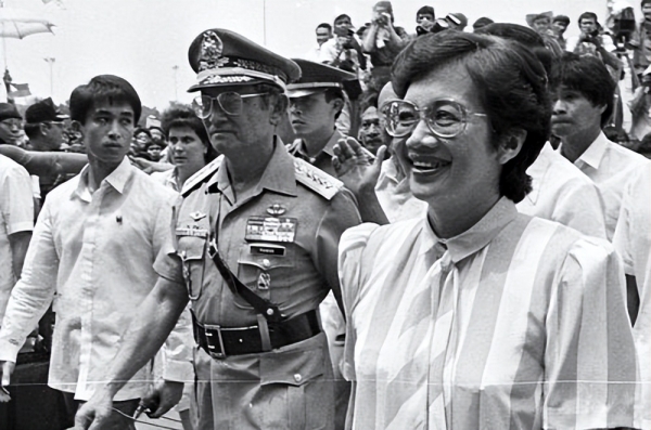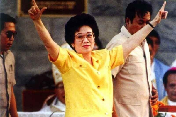 马科斯团体公然宣布他获胜连任,科拉松带领民众抗议质疑,声势浩大,镇压不住,马科斯被迫出走,在外宣布将国家政权交于科拉松。