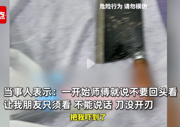 然后,等着的女子也让她看了录像:原来,男技师就是把这把"菜刀",像切菜一样,在她的背上敲到着!