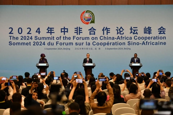 9月5日晚,中共中央政治局委员、外交部长王毅同塞内加尔外长法勒、刚果(布)外长加科索共同会见中外记者,全面介绍2024年中非合作论坛北京峰会成果。