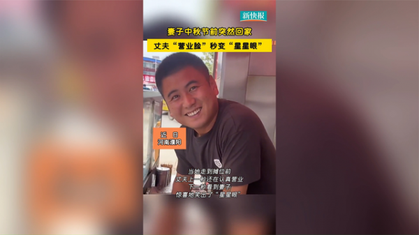 近日,河南。妻子中秋节前一天从外地归家,没有提前告知老公想给他一个惊喜。