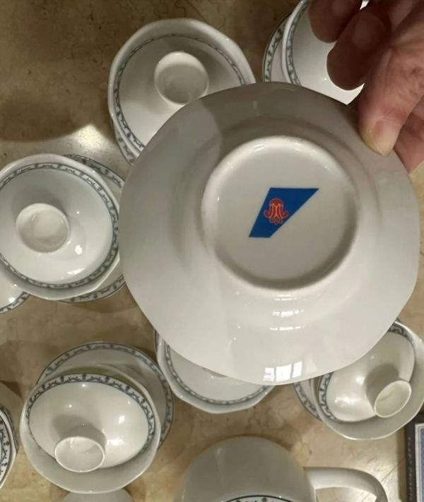"沉舟侧畔"提供举报的65页PPT中显示,家中的水壶水杯、毛巾、刀叉、碗碟均印有"机组"、"南方航空"字样或标识。