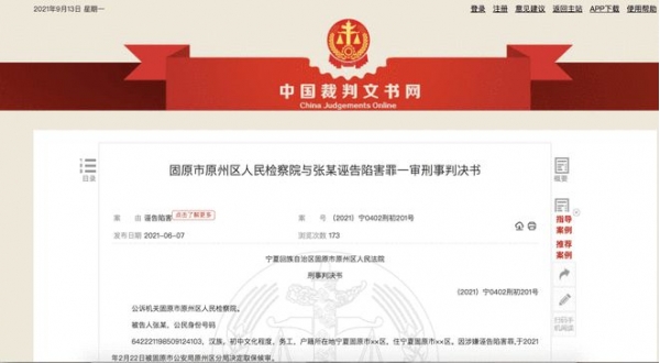 2021年4月25日,固原市原州区人民检察院向原州区法院提起公诉,指控张某犯诬告陷害罪。