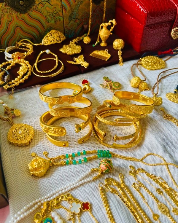 上周哥们陪未婚妻去挑龙凤镯。