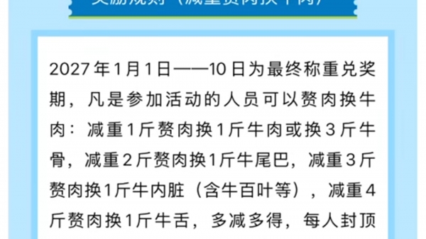 3月12日,大象新闻记者咨询山北街道,工作人员表示,需要关注公众号"活力山北","上面有具体的条件和报名方式,需要是山北街道辖区的参保人才可以参加。"同时该工作人员表示,此活动为政府举办活动,只为全民强身健体。" 只要满足基本条件就可以参加,参加年限到明年年初,这个月底会有一次称重,称重完了之后只要等到明年结束的时候,再一次称重,减了多少,它就会给你多少相应的奖品,不含虚假宣传的。"