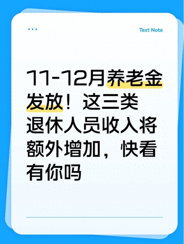 进入11月,不少退休朋友都在留意养老金到账情况,还有人发现账户里多了一笔"意外收入"。其实每年11-12月都是养老金相关待遇集中发放的时段,尤其是三类退休人员,除了常规养老金,还能领到额外补贴或补发金额,收入会悄悄增加。