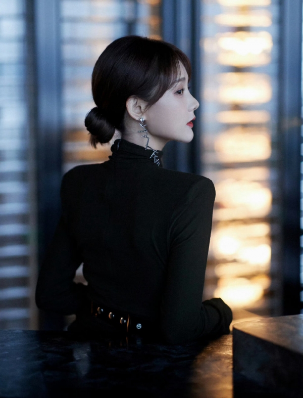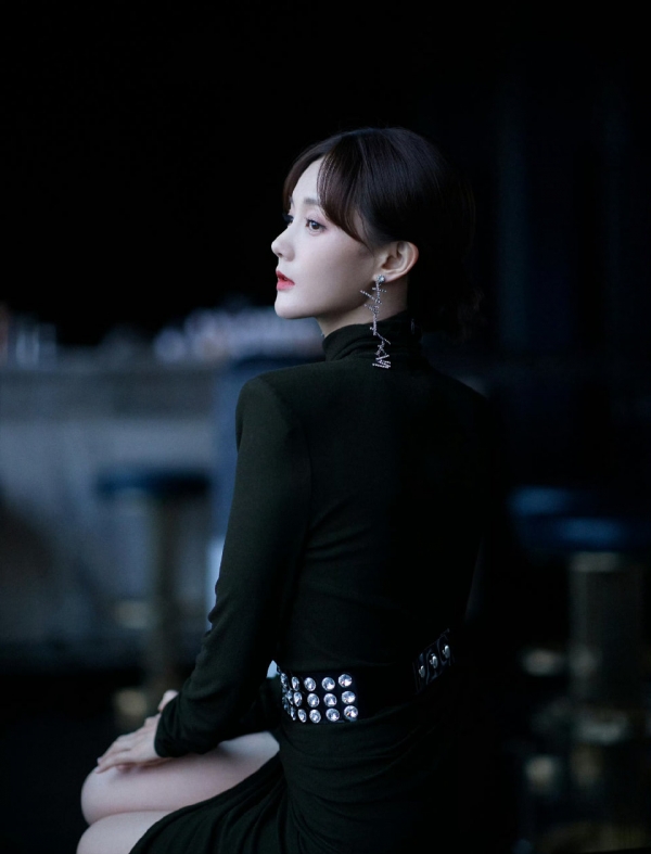 李一桐一袭黑色高领高开叉长裙,紧致裙身贴合身形,宛如女娲炫技之作,将她凹凸有致的好身材完美勾勒。