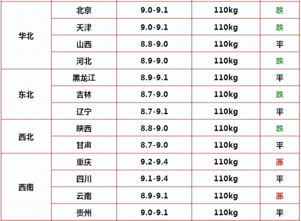 华北地区:河北下跌0.2元/斤,标猪出栏参考价8.9~9.0元/斤。