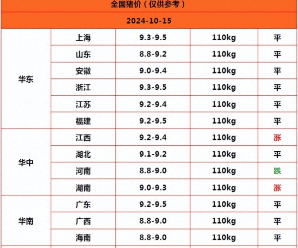 2024年10月15日,分歧增大!猪价震荡为主。从猪价预测来看,全国猪价16地平稳,4地上涨,6地下跌,猪价震荡行情。