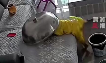 7月26日,江西抚州。孩子没睡醒,误把大锅当被子继续睡,没过多久萌娃就出来了。不是,这么大的锅盖放在沙发上干嘛?孩子跑进锅盖里给家人干着急了。