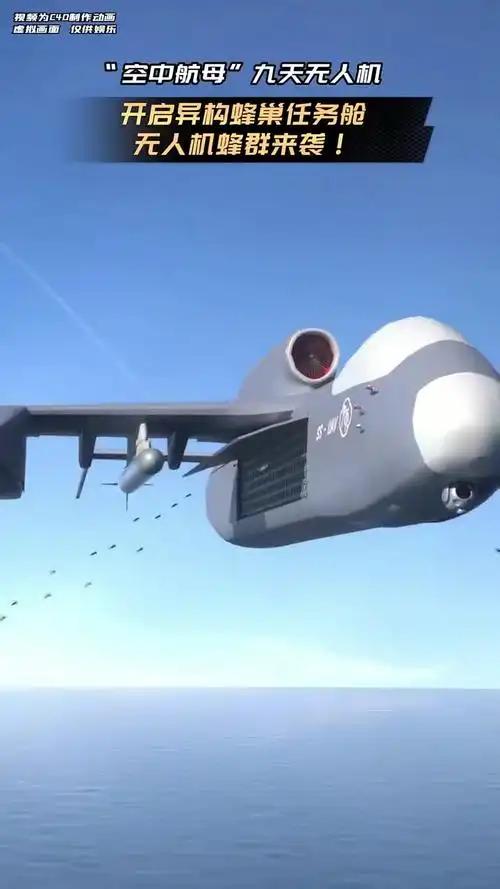 首先是"九天"无人机航母。这款去年在珠海航展亮相的"空中母舰",可搭载数百架小型无人机或巡飞弹,形成覆盖战场的"蜂群网络"。