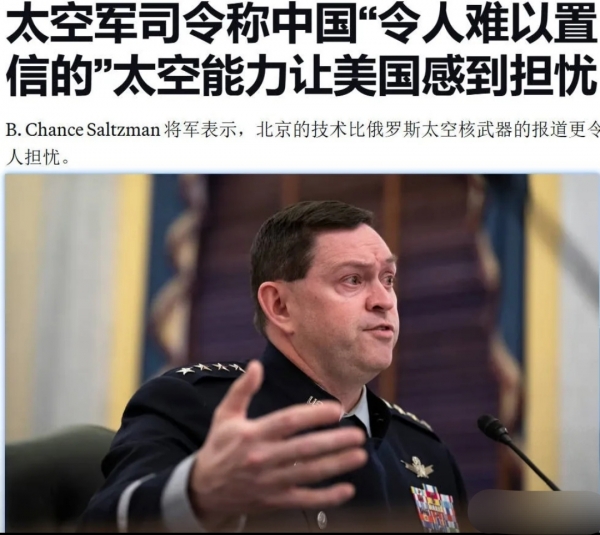 太空军司令萨尔茨,他的核心论点是:"中国能打掉我们的卫星,但我们还没法保护它们。"