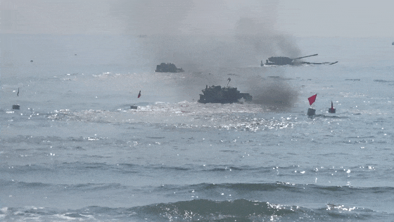 但关于这场训练央视并没有曝光更多的信息,我们只知道有05式两栖战车、武装直升机、两栖装甲车等装备。