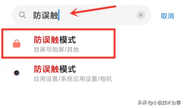 我们打开手机上面的设置,接着在搜索栏里边输入防误触,接着选择防误触模式