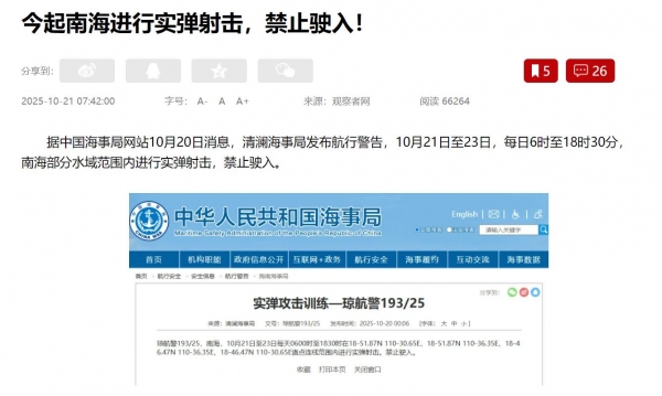 对此,解放军的回应也很直接,中国海事局反手就发布了航行警告,在南海划下一个禁区,宣布21日起进行为期3天的实弹射击演习。