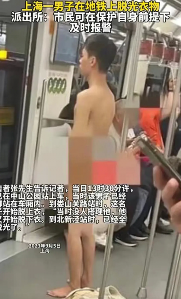 根据目击者的描述,这一令人不解的情景发生在9月5日下午约1:30。当时,目击者张先生刚刚在中山公园站搭上了地铁,发现一个男子已经光着脚站在车厢内。随着地铁的行驶,当车辆抵达娄山关路站时,这名男子开始剥去自己的上衣,在北新泾站下车时,他已经一丝不挂地站在车厢内。