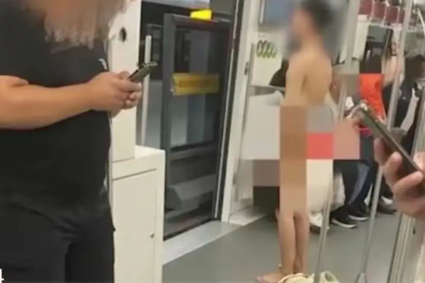近日,一名男子突然在地铁2号线上脱去所有衣物,全身赤裸站在车厢内。