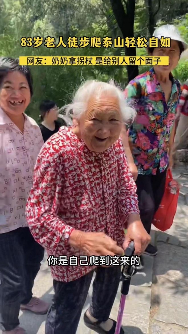 也有网友说:我爬过泰山,我有发言权。你们知道吗?十八盘我是四肢并用爬上去的,回来腿疼了一星期,发誓再也不去了。跟奶奶比起来,我也羞愧。