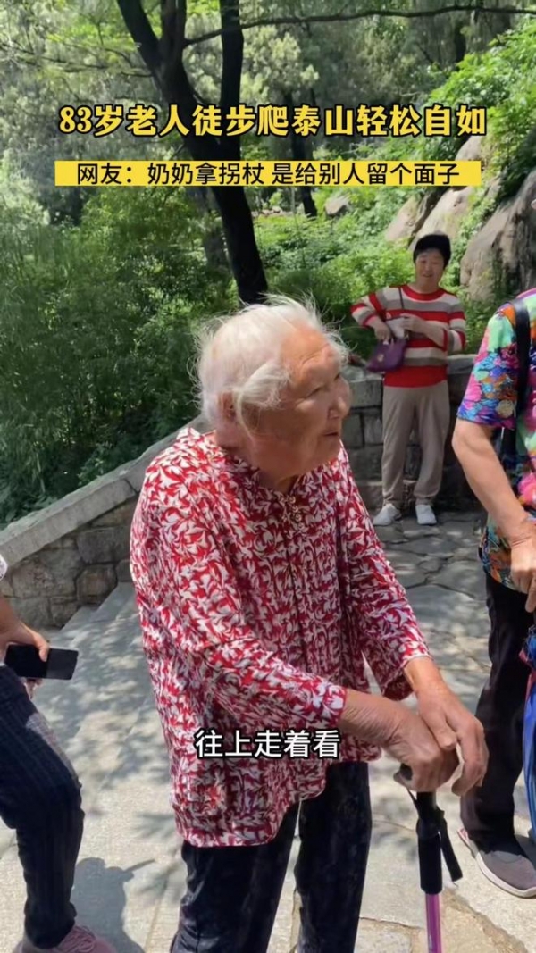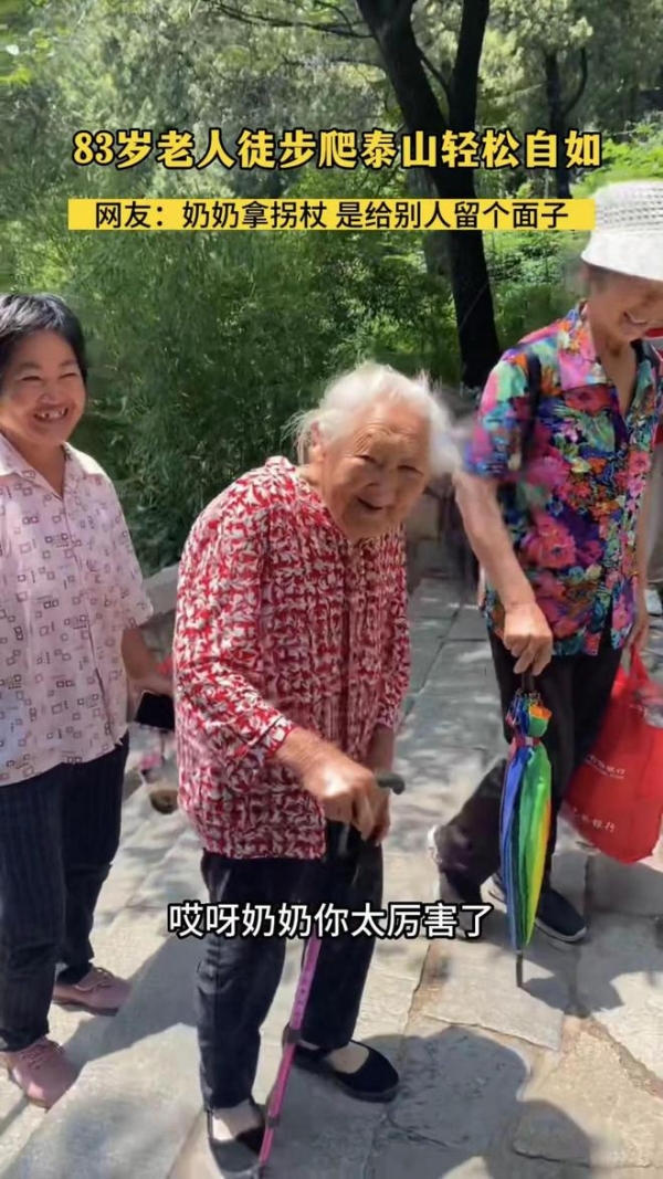 还有网友说:她拿着登山杖就是给孙子辈的孩子们留面子,现在的年轻人哪个人还有这样的体力?真的该锻炼身体了!给奶奶点赞!