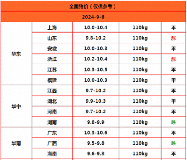 明天是2024年9月6日,北涨南稳定!猪价稳中小幅上涨。从明日猪价预测来看,全国猪价16地平稳,6地上涨,4地下跌,猪价小幅上涨。