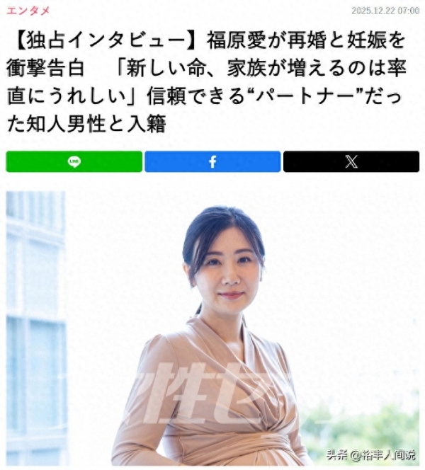 另外,福原爱还表示,起初的时候她并没有想着结婚,而是以彼此信任的伴侣身份走下去,没想到对方家人希望两人成为一家人,这才有了结婚的打算,于是便选择在今年夏天登记,随后发现有身孕。