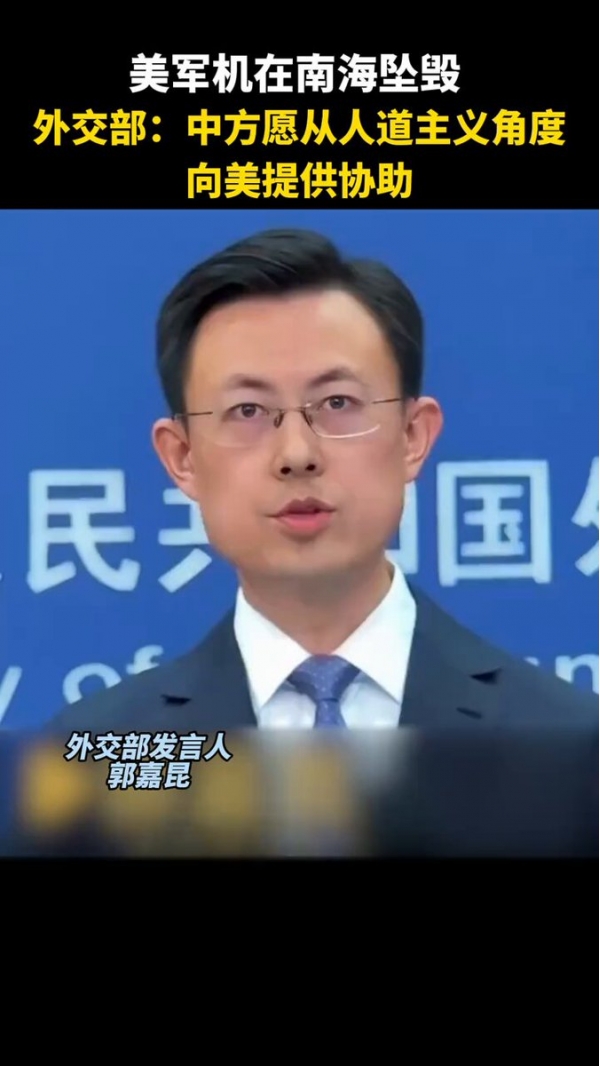 对于这次事故,中国外交部发言人郭嘉昆在10月27日的例行记者会上表示,如果美方提出,中方愿意从人道主义角度出发,向美方提供必要协助。但他同时强调,"美方有关军机是在南海开展军事演练时坠毁的。美方频繁派遣军舰军机到南海炫耀武力,是引发海上安全问题、破坏地区和平稳定的根源。"