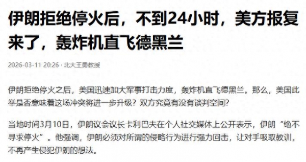 说到底,现在的局势就是死局,美伊双方谁都不肯退让,美国想靠持续空袭削弱伊朗的军事力量,伊朗则想靠反击和控制能源通道,为自己争取更多筹码。短期内想停火,根本不可能,哪怕以后冲突从大规模轰炸变成低强度对抗,也得耗上很长一段时间。