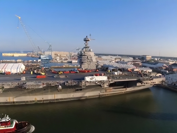 2011年2月开工,原计划2018年交付。结果呢?一再跳票!2019年下水后,这艘航母就一直停在纽波特纽斯造船厂的码头上,成了外界嘲讽的"昂贵浮台"。从下水到预计海试,整整7年时间,愣是没挪窝!