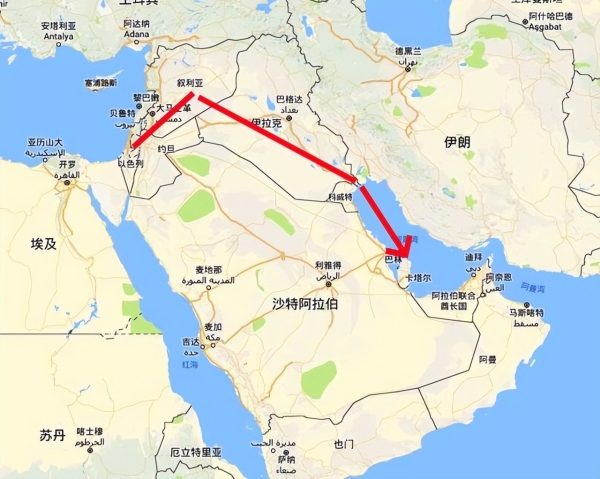 没有了沙特这条线,那么从地图上来看,以色列战机想要飞抵卡塔尔,路线只有一条,那就是战机从以色列本土起飞之后途经叙利亚、穿过伊拉克进入到波斯湾,然后沿着波斯湾的空中走廊直抵卡塔尔上空。
