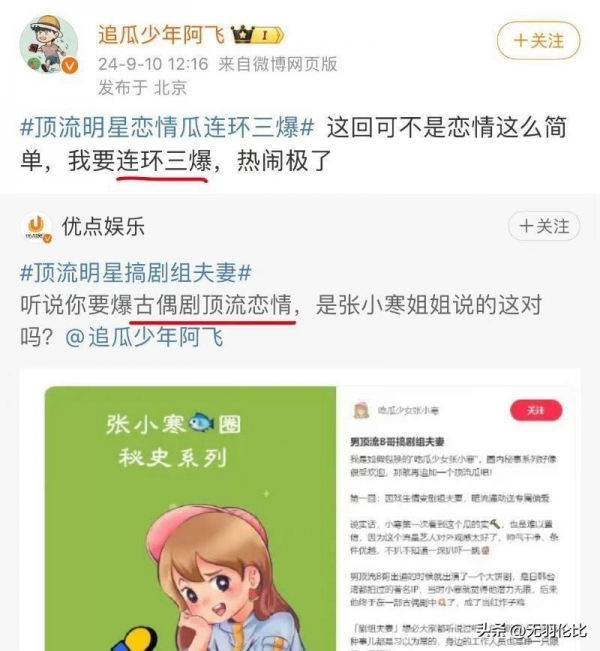 这种"预告爆料"的方式,虽然饱受诟病,但也不得不承认,它确实十分有效,预告能够提前预热,吸引更多人的关注;预告也能给狗仔们争取更多的时间,去收集所谓的"证据",或者编造更具吸引力的故事