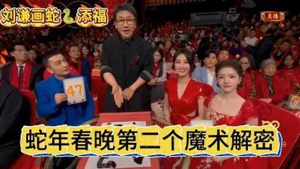 刘谦的出场,无疑是春晚的一大亮点。在万众瞩目之下,他身着华丽的魔术服,手持三本看似普通的小册子,缓缓走上舞台。随着音乐的响起,他开始了一场关于"蛇"与"福"的魔术之旅。只见刘谦手法娴熟,将小册子中的纸张随意翻动,随后轻轻一撕,三张写有"福"字的纸条便神奇地出现在了他的手中。这一刻,观众席上爆发出雷鸣般的掌声,而屏幕前的网友们也纷纷弹幕留言,赞叹刘谦的魔术技巧之高超。