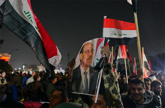 巴格达民众手持马利基头像抗议特朗普政府 美联社