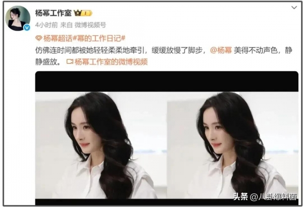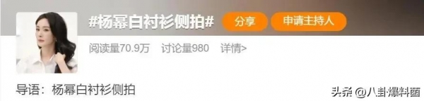 知道热搜翻车了,工作室第二天连忙发了几条杨幂的最新商拍造型,话题立马出现了一个"杨幂白衬衫侧拍",紧接着营销号跟上发文案。