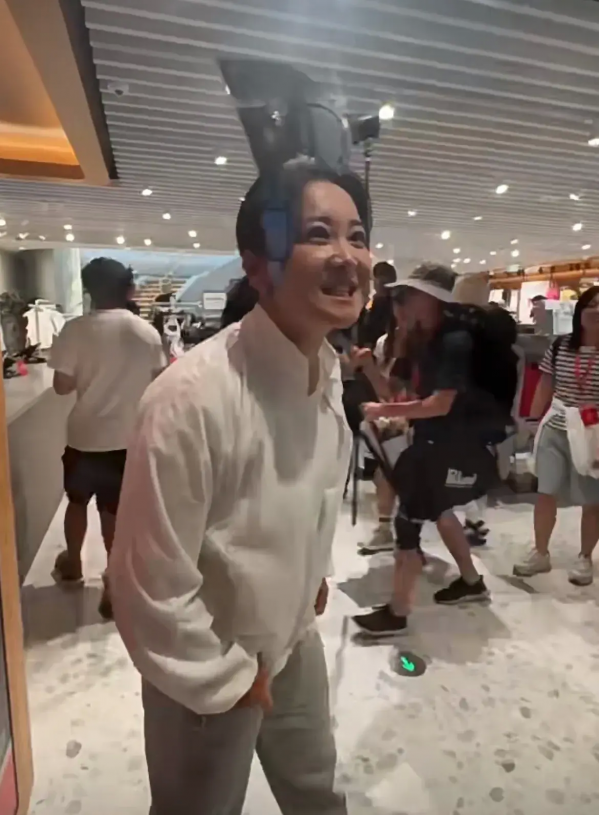 她隔着玻璃和大家互动,大方配合大家拍照,夸张地做鬼脸,最后还不忘叮嘱一句:拍完给我P一下。