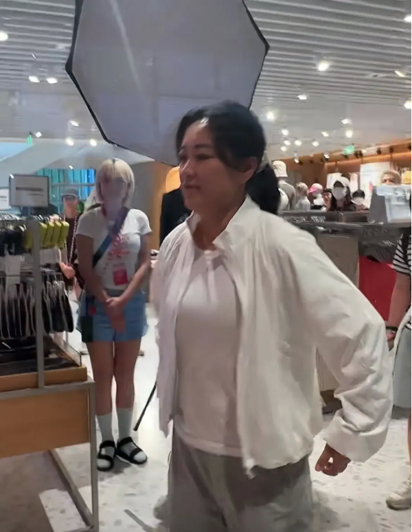 在三里屯拍广告的贾玲肉眼可见的壮实了不少,隔着衣服都能看出腰上的肉。减下去的双下巴又回来了。