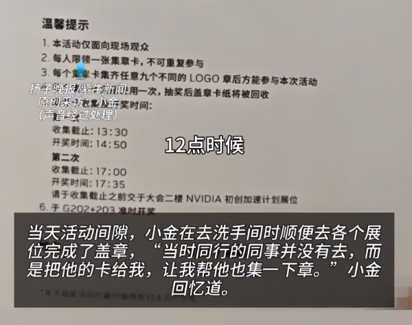 最近,实习生小金去苏州出差参加了一个英伟达的活动,结果在活动现场他随手集章参与了抽奖,居然抽中了价值3000元的显卡!