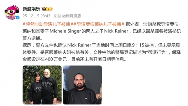 案发仅仅一天后,风暴中心浮出水面。当地时间12月15日晚9点15分,莱纳夫妇的儿子尼克·莱纳因谋杀罪名被警方逮捕。警方文件中的一句描述格外刺眼--"帮派行为",为这起家庭悲剧蒙上了一层更复杂的阴影。目前,法庭为其设定了高达400万美元的天价保释金,但具体案件细节与动机尚未公开,开庭日期也未定。
