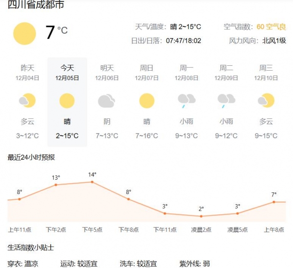 成都今日份的温度是2~15度,这个温度比北京暖和多了,马克龙晨跑选择的衣服很清爽,还有欧洲人比较抗冻,即使在零下的温度还穿单衣。