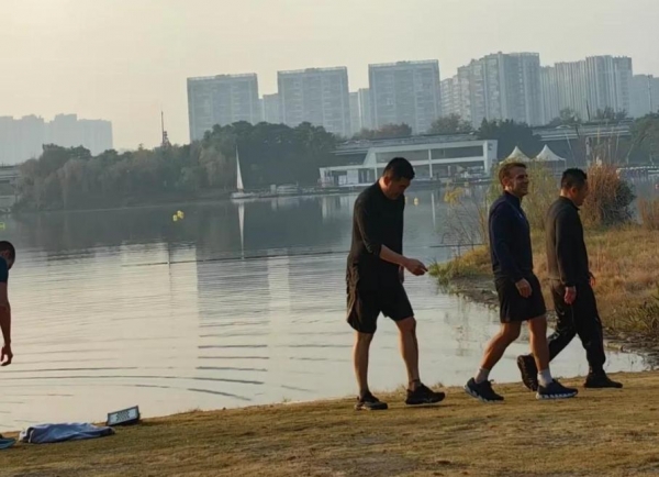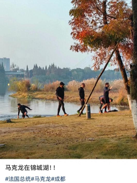 由于是早上,路上的行人并不多,马克龙和保镖们晨跑完还跳进湖里游泳,然后上岸离去,看来马克龙一点儿也不见我,为了健身还跳进湖里游泳。