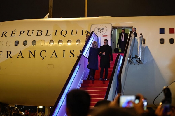 据悉马克龙是4日晚上抵达成都,当天是穿风衣下飞机,一身全新造型看起来很保暖,没想到次日就换上了单衣短裤,感觉这前后的穿搭根本不在一个季节。