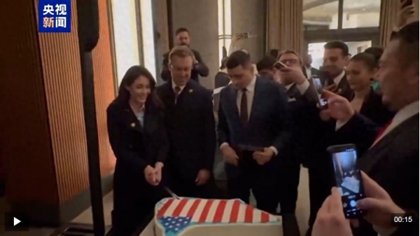 据央视新闻,当地时间1月20日晚,在美国首都华盛顿特区的肯尼迪中心,共和党多名议员切开并分享了一块丹麦自治领地格陵兰岛造型、覆盖美国国旗图案的蛋糕。据称,当晚的活动是号称美国"共和党国家复兴"组织成立一周年的聚会。