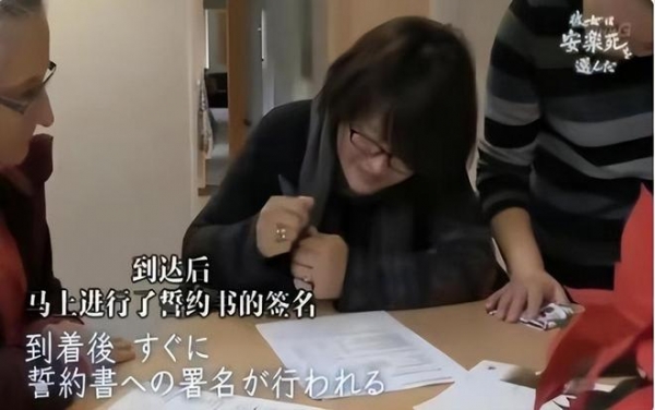 到了瑞士之后,医疗机构的工作人员在确认过小岛美奈的意愿之后,给了她一份誓约书,这份誓约书必须是小岛美奈本人在意识清醒的情况下签字才有效,而小岛美奈有两天的时间考虑要不要签下这份誓约书。