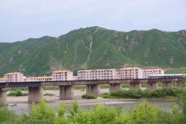 在图们市一定要亲眼见证的就是图们江码头的86界碑,途径图们口岸,铁路口岸,来到一处小小的码头,隔着图们江我们可以清楚地看见对岸朝鲜的稳城郡这是朝鲜新建的城区,有整齐划一的小区布局,房子建设低矮方正,是朝鲜民族传统的民居风格。码头一侧是中国的86界碑,这里就是中朝边境。遥望着对岸的居民区,偶尔得见一些忙碌的朝鲜人,在山谷的沿着河岸的平原地带有忙碌的建筑工人。在山坡之处种满了庄稼。