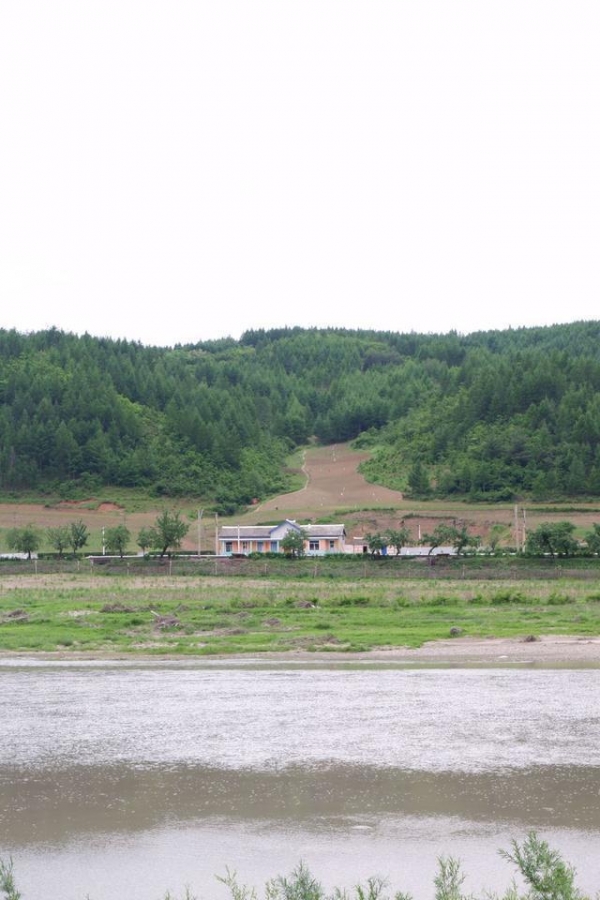 从图们市城区沿着图们江一路前行,沿途都是边境线的隔离带,我们可以清晰地望见对岸的北朝鲜。连绵起伏的山谷丘陵没有茂盛的树木,据说是朝鲜政府将成片森林砍伐殆尽,每一个山头都是一目了然,这样是为了防止朝鲜人民偷渡来到中国。必经在河道狭窄之处,轻松渡河就可以跨越两国边境线。