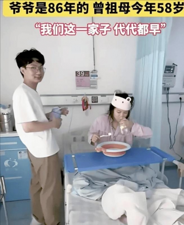 照片里,新生儿被包裹在襁褓中,年轻的父母一脸青涩 -- 男孩 18 岁,女孩 20 岁,两人加起来还不到 40 岁。而 36 岁的奶奶、58 岁的曾祖母站在一旁,笑容里难掩对 "家族延续" 的满足。女子在配文中提到,"家里一直有早生的传统,早点有孩子才踏实",却没提这对年轻父母是否完成了基础教育。