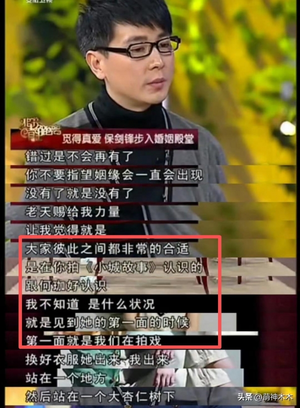 说回到出轨时间线,保剑锋也是给自己挖了不少坑。根据蔡清珠说的2007年和平分手,那保剑锋一直以来在采访中秀的恩爱夫妻情都在背刺他本人。他多次在采访中称与太太2006年相识相爱,第一面就觉得合适,《小城往事》这部剧更被标榜为两人的结缘剧。
