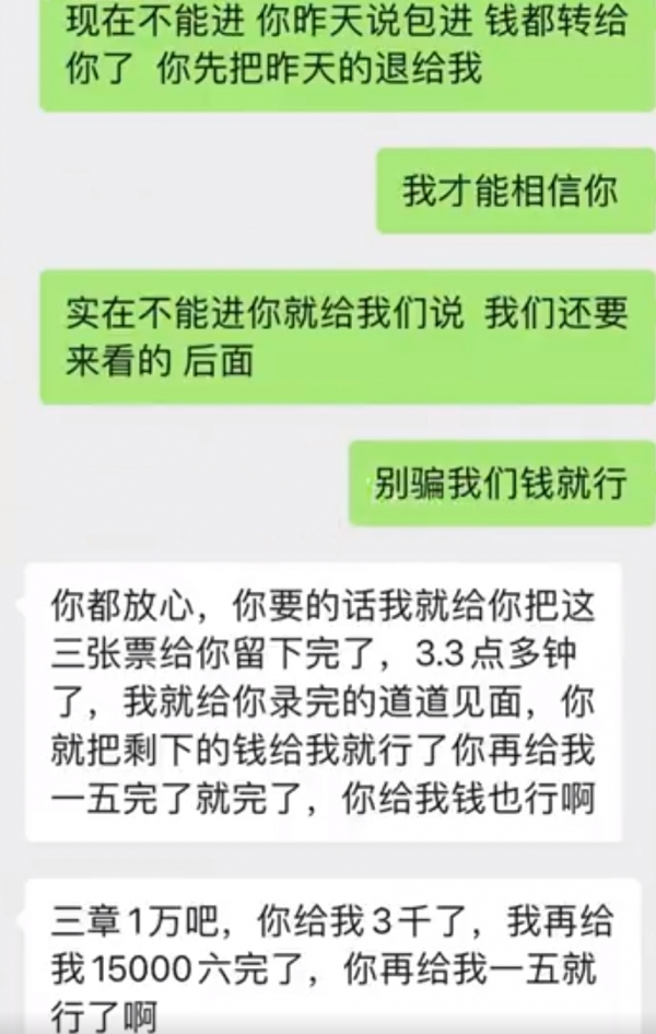 "到了场内把我们带进男厕,又臭又脏,里面有二十几个人,后来又把我们带到一个墙缝躲避,大家在里面都不敢呼吸,最后被安保发现后让我们出去。"被赶出后,王女士一直联系不上黄牛随即报警,在派出所发现很多人同样被骗,甚至有人被骗上万。