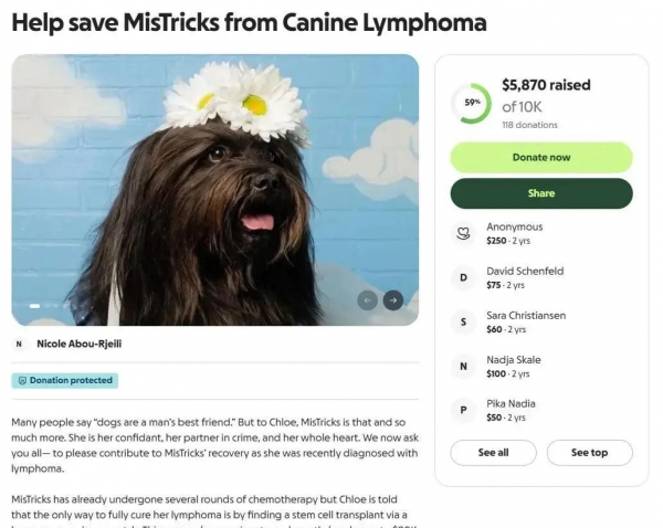 为了救它,Chloe几乎倾尽所有。化疗1万美元、检测7000美元、住院4000美元……账单像雪片一样飞来。医生给出的最后希望是干细胞移植,费用高达8万美元(约合人民币57万)。